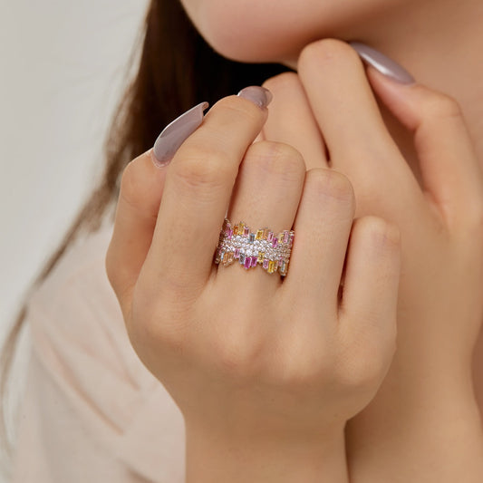 [Bijoux de luxe] Bague quotidienne ornée de motifs colorés et radieux